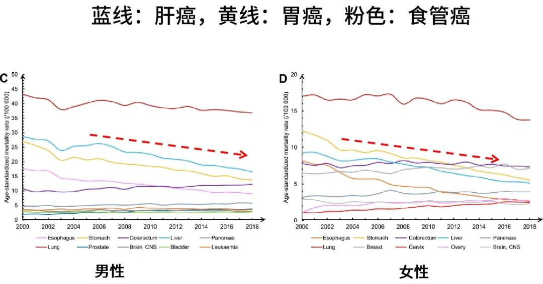 数据显示,近20年来我国肝癌、胃癌、食管癌的死亡率呈下降趋势,这背后离不开防癌筛查(如胃镜、肠镜等)的普及。