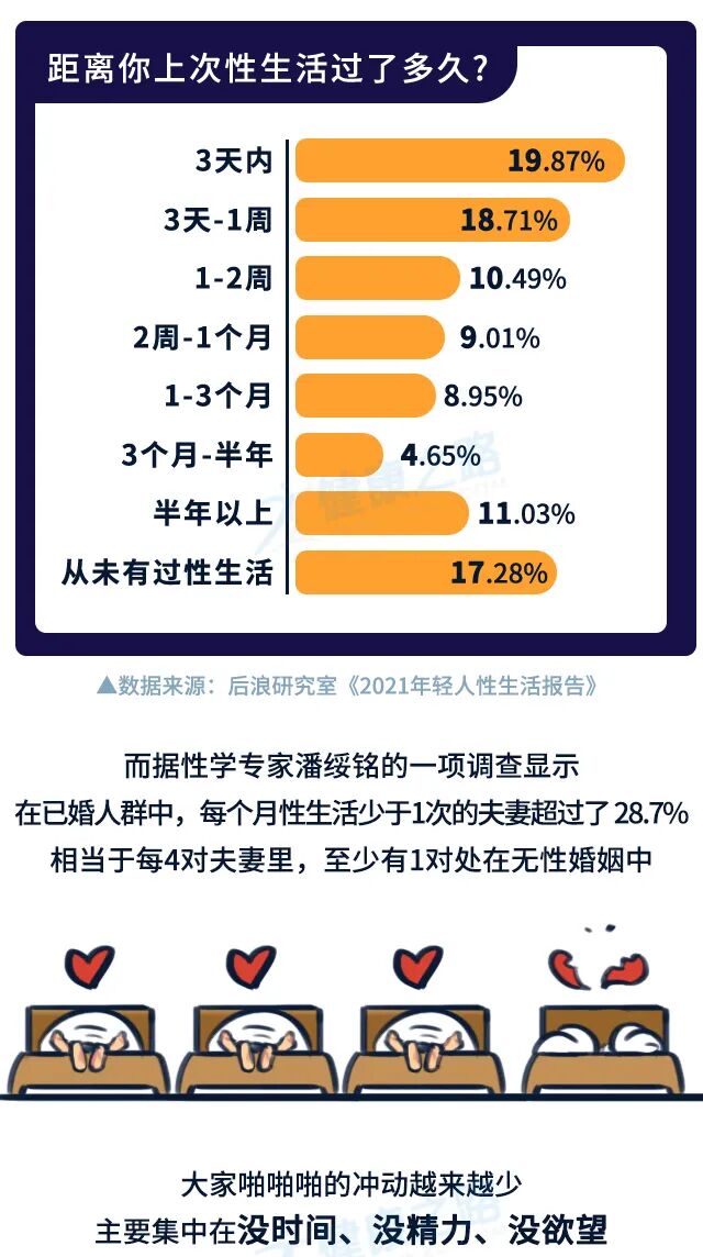 小薇想说,先不去纠结频率和体验,不妨先回头想想看自己日常生活中的状态如何。放下深夜的手机,保证充足的睡眠,白天放下手机的时间可以多和伴侣聊聊天,一起出去走走逛逛散散步,放松身心,让身体“充满电”。