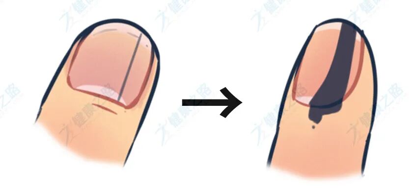 健康的指甲的颜色都是透明的,如果发现隐约开始出现一条黑线,那就要小心了,可能是长了甲母痣!