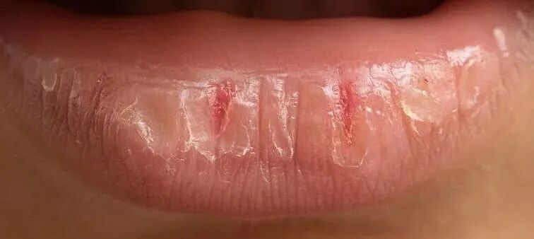 如果嘴唇干燥的情况比较严重,还有出血,发痒、肿胀的情况(如下图)。