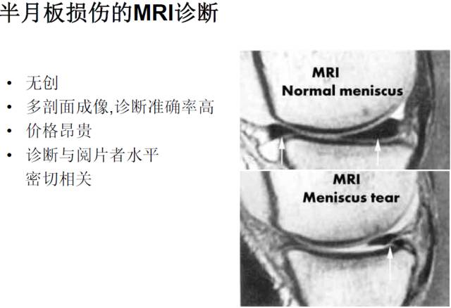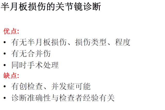 临床表现急性期:外伤史(负重活动时膝关节扭伤)疼痛 ,关节活动受限(伸直)肿胀多不明显慢性期:弹响交锁和解锁现象股四头肌萎缩 关节间隙压痛 麦氏征(+)